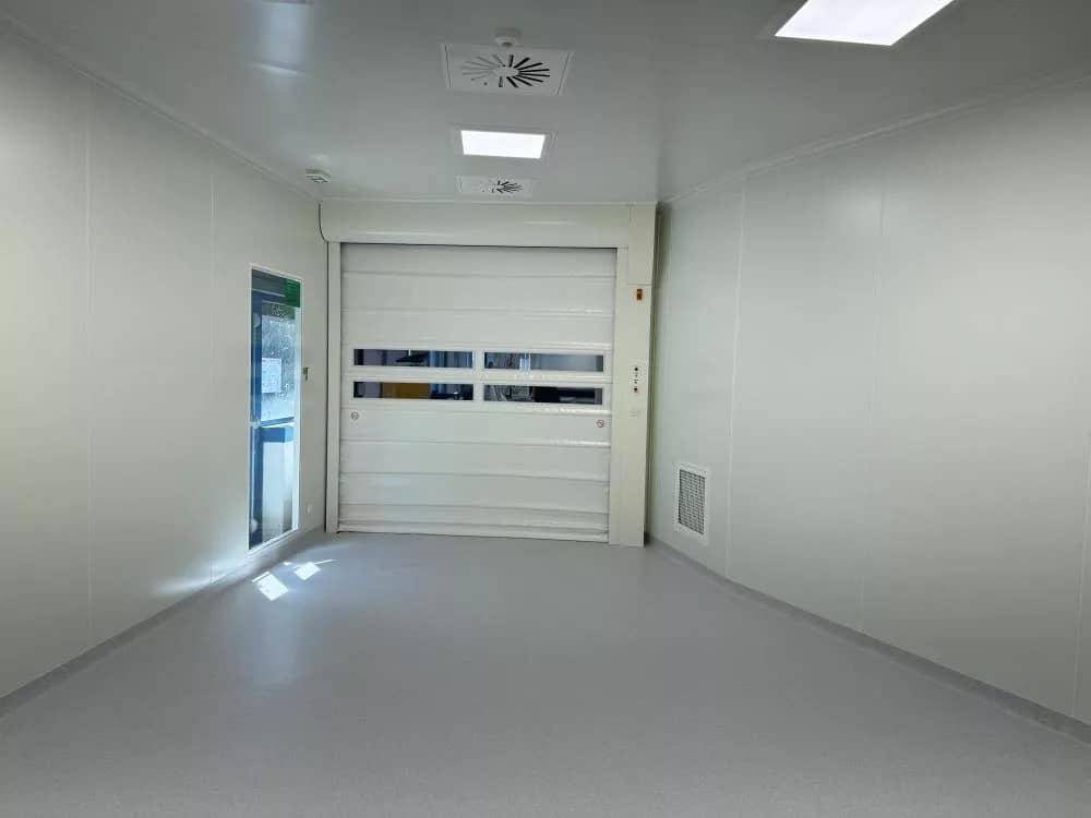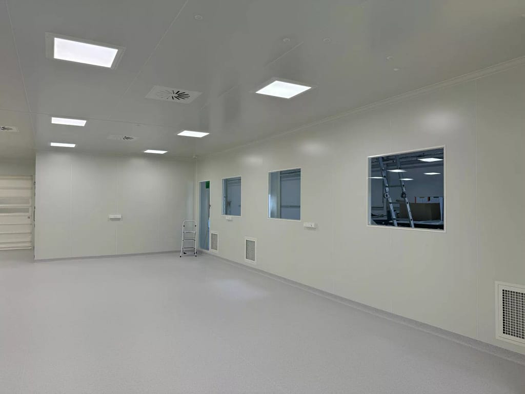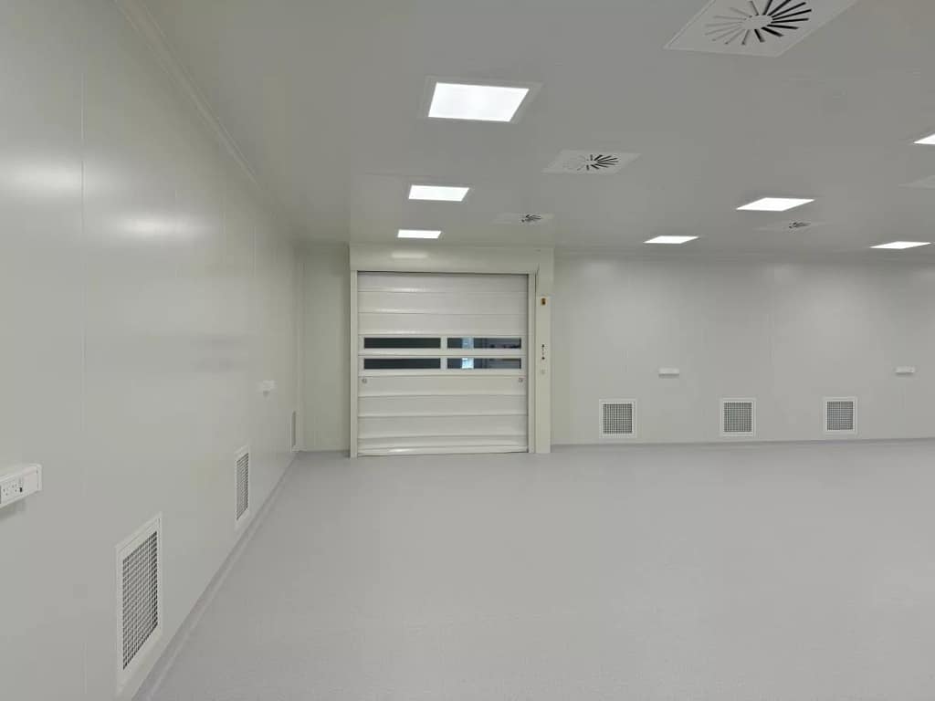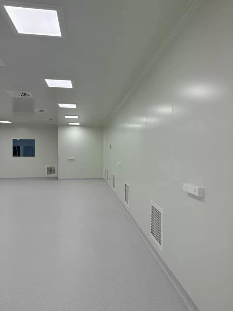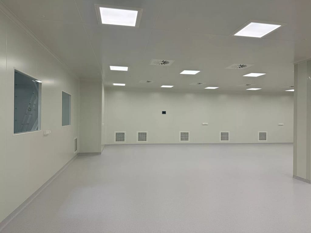 Pour assurer une qualité de l’air optimale, nous avons installé des filtres HEPA 14 dans les bouches de soufflage. Les murs de la salle sont réalisés avec des panneaux sandwich en laine de roche de 60 mm d’épaisseur, tandis que le plafond est constitué de panneaux en PIR, offrant une résistance au feu de 30 minutes.