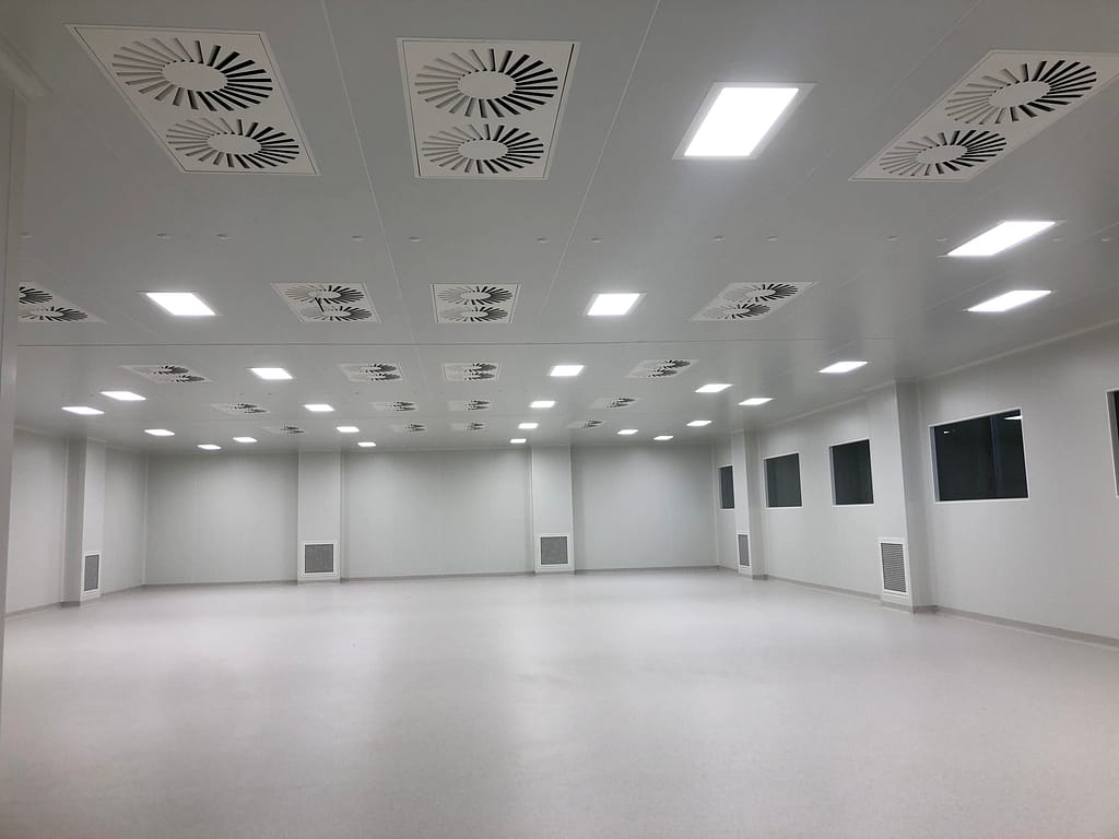 - 1 salle propre ISO 7 de 280 m² hauteur de 2800 mm avec éclairage LED