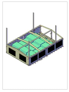 Afin de bénéficier d’un apport d’air neuf dans le hall des stockage, nous avons prévu l’aspiration de 20 % d’air extérieur au niveau de la CTA. Toutefois, afin de favoriser les économies énergétiques, nous avons prévu un échangeur de chaleur. Cet échangeur de chaleur intégré à la CTA transfère les calories en hiver (en été il s’agit de frigories) de l’air rejeté vers l’air neuf aspiré.