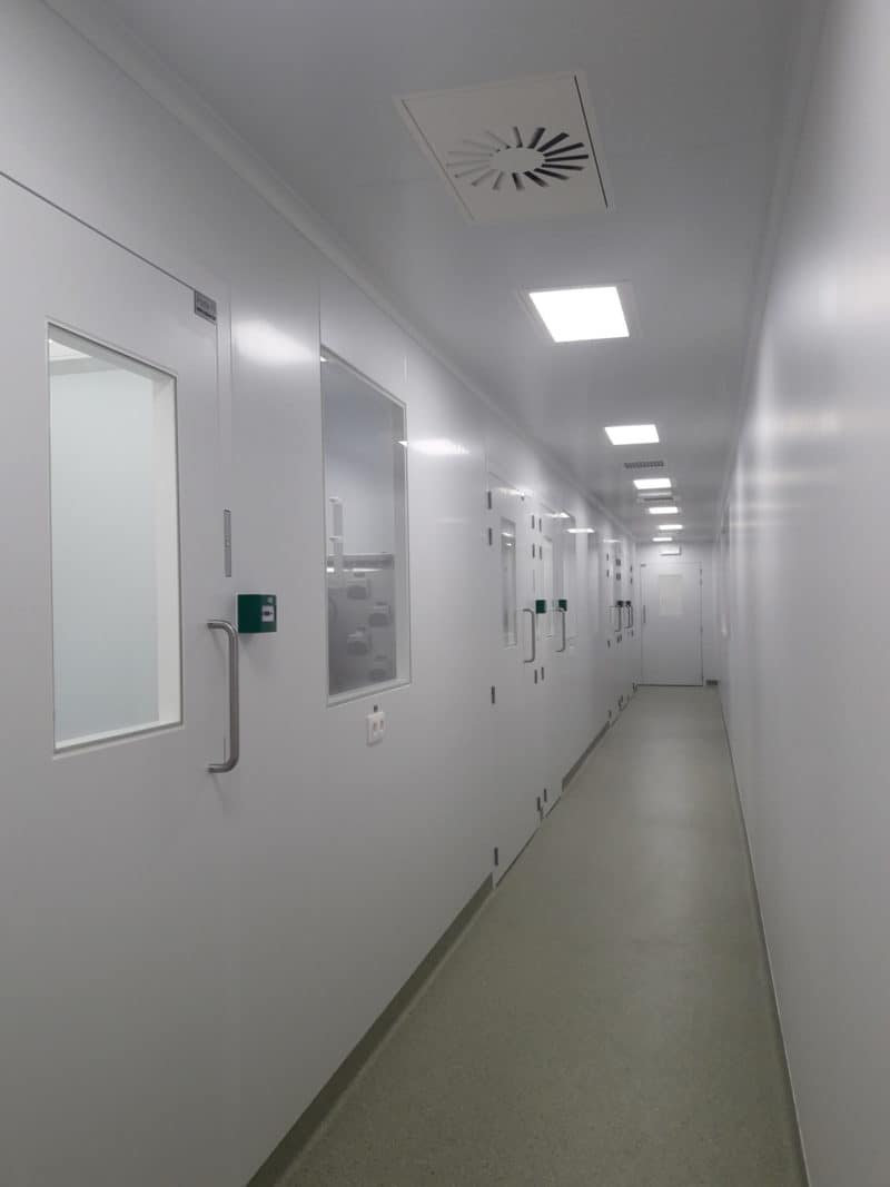 Ce couloir est conçu pour répondre aux exigences strictes d’une salle blanche : surfaces lisses, matériaux faciles à nettoyer, absence d’angles morts, et équipements adaptés. Il joue un rôle clé dans le maintien de la propreté et de la sécurité tout en permettant une circulation efficace.